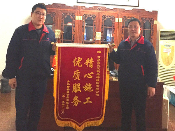 Nous produisons et expédions tout le matériel des usines situées à Qingdao, en Chine. Nos constructeurs certifiés peuvent assurer la construction clé en main et l'entretien futur d'un bâtiment fini. Lorsqu'aucun constructeur certifié ne se trouve dans votre région, notre équipe de montage sera organisée pour le construire directement pour les clients, même s'ils sont à l'étranger.